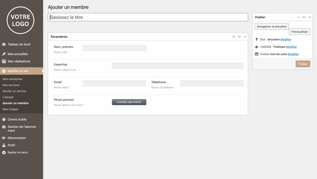 Une fois tous les champs remplis, cliquez sur « Publier » ou « Enregistrer » en haut à droite pour que les changements soient visibles sur le site.
