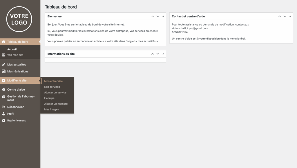 La modification apparaitra automatiquement sur votre site. Vous pourrez la visualiser en allant dans « Tableau de bord » puis « Voir mon site ».