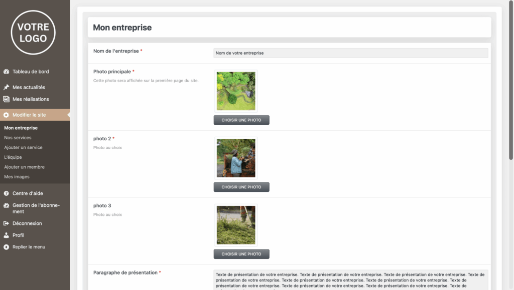 3- Cliquez sur « Modifier le site » puis « Mon entreprise » dans le menu de gauche.