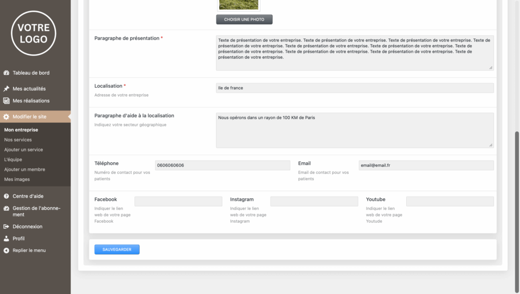 4- Modifiez l’information ou l’image de votre choix puis cliquez sur « sauvegarder »